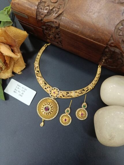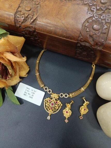 MS Jewellers – Traditional Indian Floral Gold Plated Necklace Set