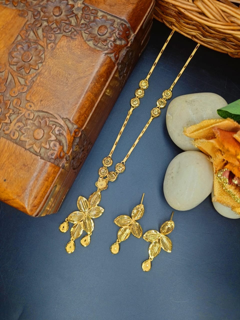 Make a grand statement with this Heritage Long Haar Necklace Set from MS Jewellers. Inspired by royal Indian jewellery traditions, this long haar features delicately carved floral and geometric motifs linked together to create a regal flow. The centerpiece showcases an elegant pendant with intricate engraving and hanging drop charms, adding graceful movement to your look. The matching long-drop earrings complete the set, making it ideal for weddings, festive occasions, and traditional gatherings.